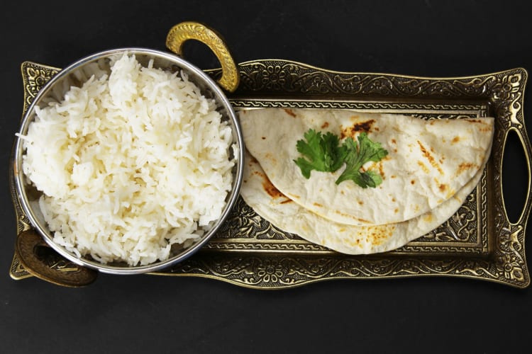Roti is a popular flatbread made with water and wheat flour, millet or rice. Some recipes call for olive oil or salt. It’s often prepared by layering with a smooth and generous spread of ghee or clarified butter. Roti is traditionally baked on a tawa, a flat cast-iron frying pan and served with curries, stir-fries or hearty vegetables. When roasted over an open flame, you’ll create the phulka variety, which takes in steam that puffs up the dough into an airy ball.