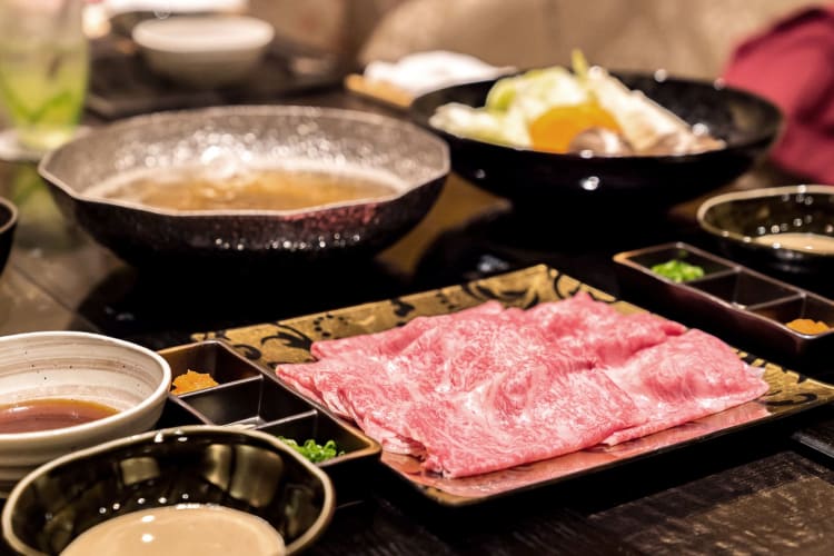 Shabu-shabu is one of the best ways to enjoy Matsusaka beef. The beef is cut into a more traditional steak shape and served raw so you can appreciate the marbling before cooking it. Shabu-shabu involves dipping slices of raw Matsusaka beef into boiling water just until it changes color and there is only a hint of pink left.