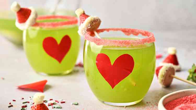 If you’re willing this holiday season, we want you to whip up something as yummy as it is cute, and we want you to be successful at it. That’s where Grinch Punch comes in: a tropical lime-pineapple punch in an eye-catching Grinch-green. Serve with a jaunty, edible Santa hat on the edge of the glass and a frosted rim of red sugar, and the Christmas sweater crowd will be holding a glass of this in all their photos.