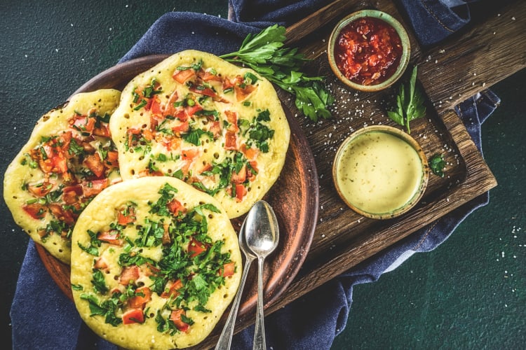 Another form of the popular dosa, uttapam is a blend of rice and lentils soaked until soft, then blended into a batter. The batter is allowed to ferment before being spread in a frying pan and topped with aromatics and vegetables. This South Indian food often seen as a breakfast staple turns a pancake variation into a savory sensation. Uttapam is a distant cousin of thosai, an ancient dish from Singapore that’s prepared and served in a similar fashion to the South Indian version.