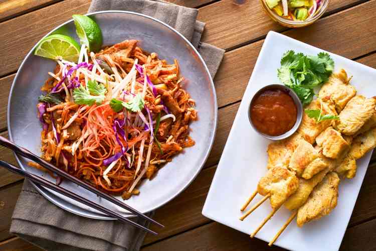 Common ingredients that bring Thai food to life include creamy coconut milk, spicy chile peppers, refreshing fruits like papaya, savory fish sauce and plenty of fresh herbs, such as fragrant Thai basil. Popular dishes range from the well-known pad thai and Thai green curry to flavorful tom yum soup and moreish mango sticky rice.