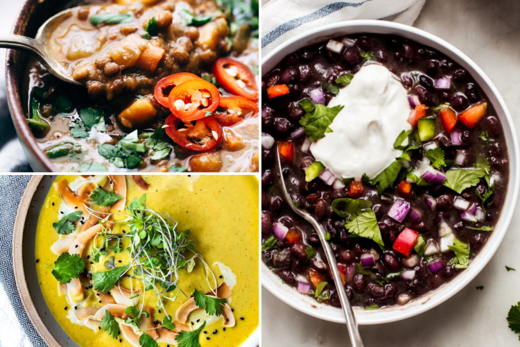 Hearty, stewed black beans are a staple of vegetarian soup recipes. The Very Best Cuban Black Bean Soup by Little Spice Jar infuses the dish with bright Cuban flavors in a balanced and filling recipe that can be made either on the stovetop or in a pressure cooker.